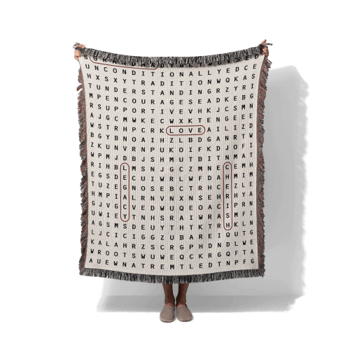 Each woven blanket in this collection is designed to spark connection, memory, and personal meaning. Featuring custom-curated word searches and original patterns, these blankets turn everyday comfort into a canvas for storytelling. Whether you’re celebrating a place, a memory, or a feeling, there’s a design here waiting to be part of yours.